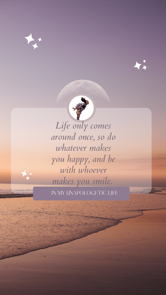 No matter what happens in life, always do whatever makes you happy and be with and around those that make you smile as well. We only get to partake in this human experience once, so make it great!