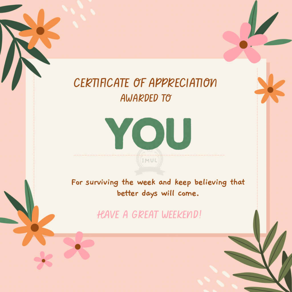 You did it! You survived the week no matter what it looked like. And even if it wasn’t to your liking just know you have the weekend to decompress, recharge and prepare to make the upcoming week that much better!